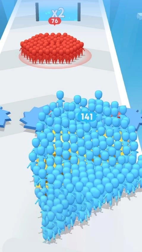 玩家通过操控主角避开障碍物来增加军队人数,以此获得足以与敌方抗衡的兵力。玩家拥有的军队规模越大,积累的战斗值就越高,最终冲过终点时的奖励结算也会更丰厚。每经过三个关卡就会遇到一个强力Boss,击败它就能获取更多奖励。