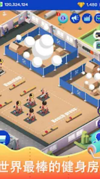 这里有着十分经典的经营模拟玩法,你能够自由规划健身房的发展路径。