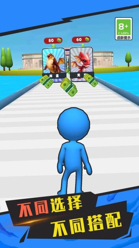 这是一款跑酷休闲合成类游戏,玩家选择一个英雄,在跑酷途中挑选不同的英雄作为随从,抵达终点后将与最终的魔王展开战斗,击败魔王就能进入下一关。不同的选择会带来不同的结局,不同的英雄拥有不同的战力,所有选择都由你决定,快来体验这个玩法丰富的游戏吧!