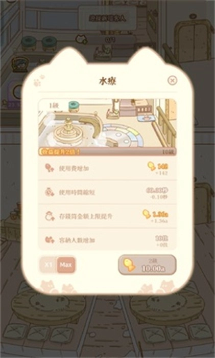 1、治愈感满满的模拟经营玩法,让玩家能体验到经营一家满是可爱猫咪的旅店的乐趣。
