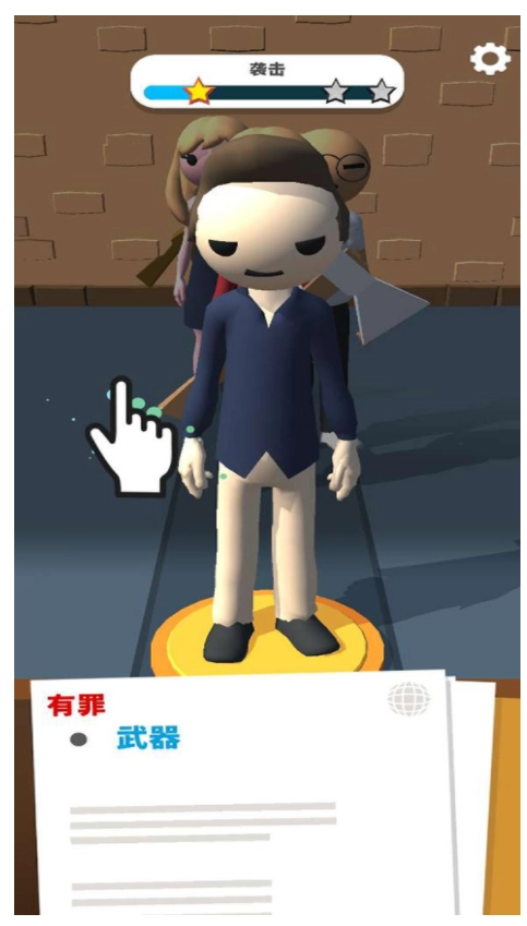 3、中间的放大镜能扫描嫌疑犯身上是否带血,若有血迹就向左滑动判定其有罪,若无血迹则向右滑动判定无罪。你需要谨慎做出每一个选择,既要确保不放过任何坏人,也不能冤枉一个好人,整个过程十分有趣。