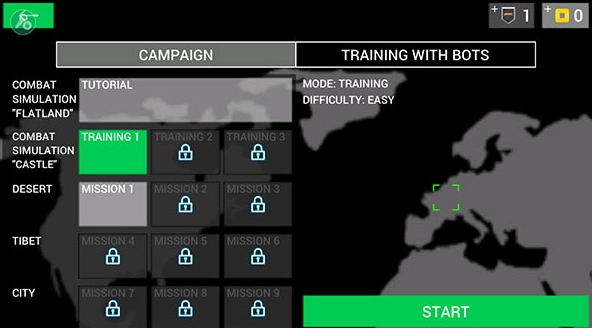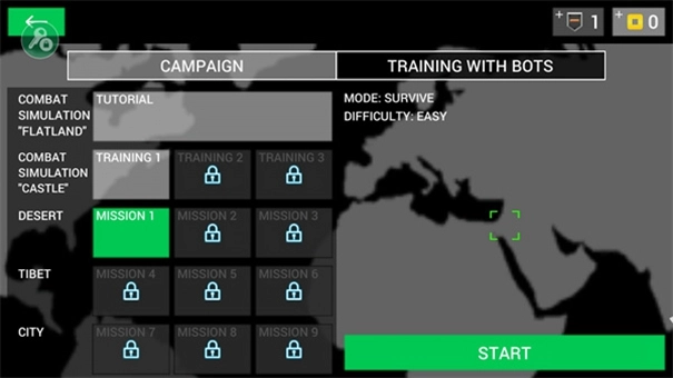 2、在单人模式下,选定想挑战的关卡后,点击右下角的START按钮就能开始游戏,这里我们拿TRAINING 1来举例说明。