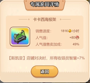 这个家具的效果同样是在店铺对决中得到增强,不过它只针对该员工个人生效,且数值会有大幅度的提升。
