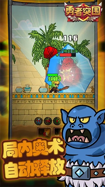 《勇者突围》是一款放置类ARPG游戏,核心玩法围绕地下城冒险展开。玩家通过挑战关卡、击败怪物来获取装备,并通过强化属性持续提升自身战斗力。在角色成长方面,游戏着重突出装备掉落机制与词条强化系统,不同的Build搭配方向会直接影响闯关的效率。游戏战斗节奏平稳,装备掉落的反馈感清晰,即使离线也能持续积累资源,让玩家轻松实现角色养成。