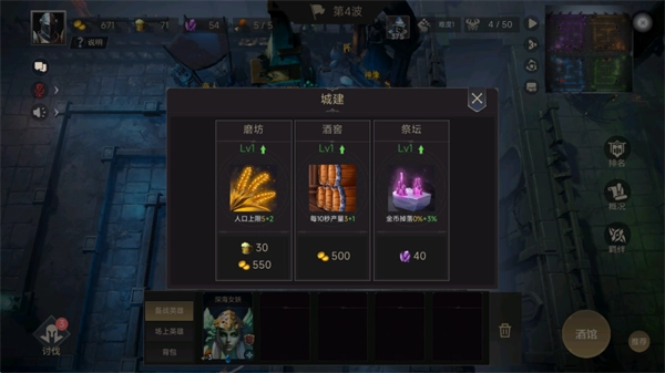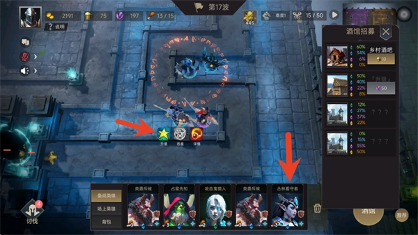 3、在酒馆中招募英雄,为英雄提升星级、打造装备,搭配并激活羁绊效果,以此强化队伍实力,进而挑战更高难度的关卡。