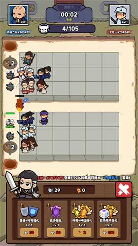 强化时消耗银两或幸运符,既能提升在场武侠的攻击力,也能提高武侠的召唤概率。召唤概率等级越高,召唤出高品质武侠的几率就越大。