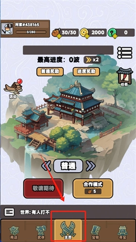 2、进入武侠界面后,点击“主页”按钮即可回到主菜单。主菜单作为核心操作区域,支持开展各类操作。