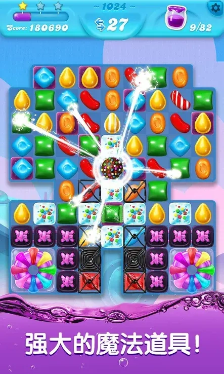 5、苏打模式:目标是让汽水平面上升到最顶端。这可以通过“炸瓶子”来达成——消除糖果时,瓶子就会释放汽水。