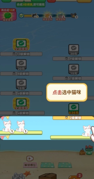 2、把三只相同的猫咪放在一块儿,合成等级更高的猫咪。