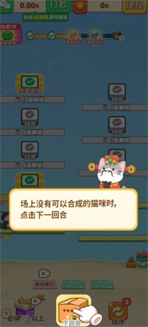 2、合成时可使用排序功能,这样等级相同的猫咪就能自动排好序,合成起来会特别轻松。