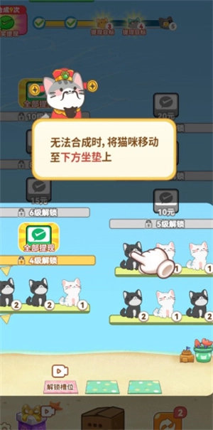 4、无法合成的时候,将猫咪移动到下面的坐垫上。