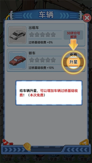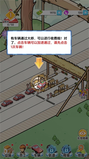 3、只要有车辆驶过桥梁,就能产生收益,而且点击车辆还能让它加速通过。