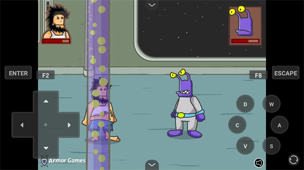 3、角色移动由左下角的四个按键控制,右侧的A、S按键可用于出拳脚发动攻击。