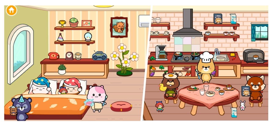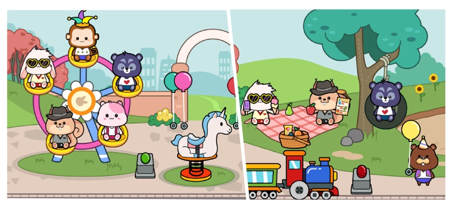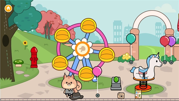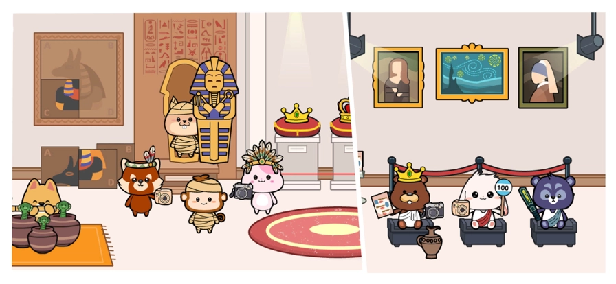 2、选定一个地点后,就能直接进入其中,里面有不少卡通角色,还可以拖动它们。
