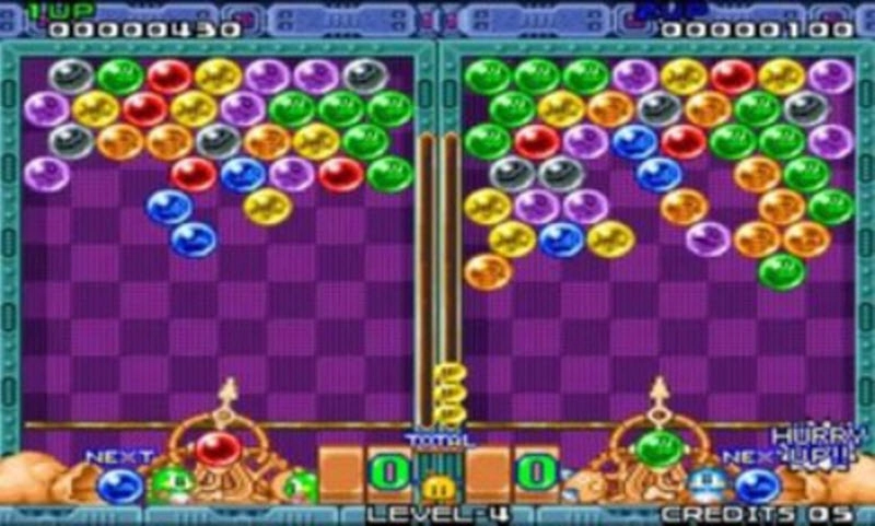 2、除了单人闯关模式外,也提供双人玩法,两名玩家可展开对抗,一方消除的泡泡会出现在另一方的阵地中。