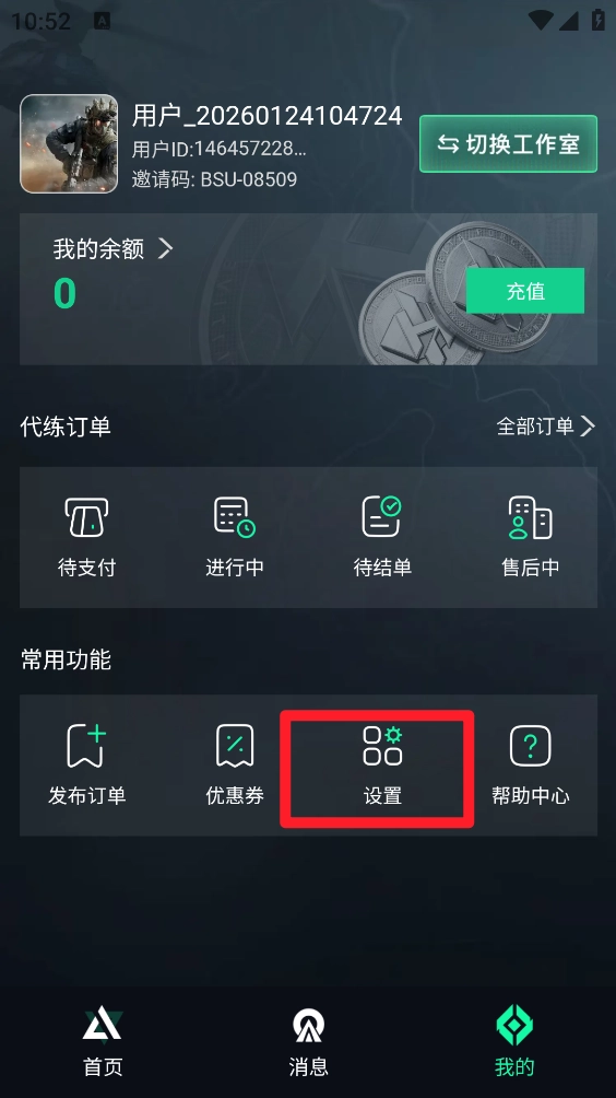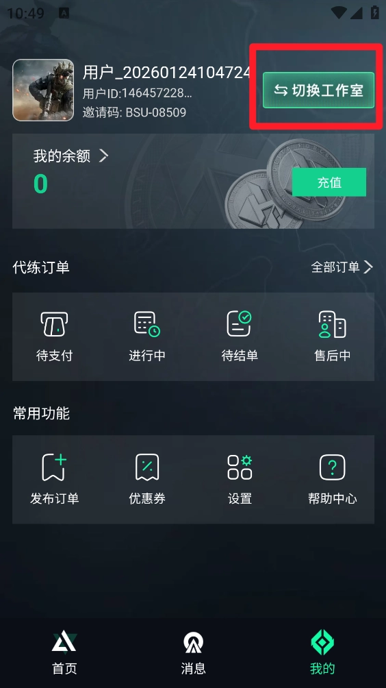 4、也能在“我的”页面点击“切换工作室”按钮,按照提示提交申请,待审核通过后,即可成为该工作室的打手。