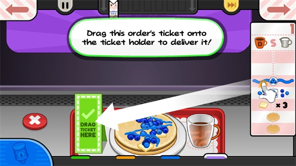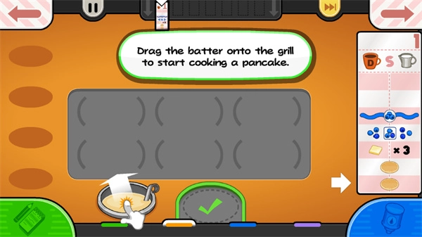 2、玩家首次进入游戏时会触发教程,需灵活完成教程内容,即可掌握制作煎饼的技巧。