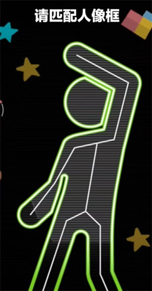 2、游戏角色会模仿现实中玩家的动作,玩家需要通过手脚配合做出舞蹈动作来获取高分,这种玩法的识别逻辑是借助前置摄像头来实现的。