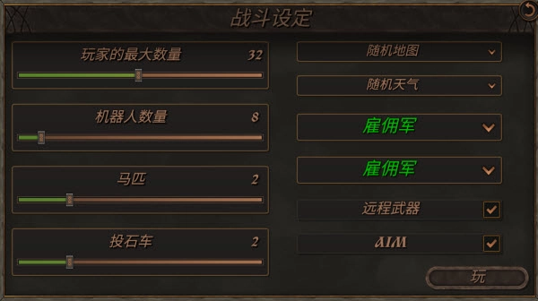 4、还能够进行各类基础战斗设定的设置,等所有准备工作都完成后,点击右下角的“玩”按钮即可。