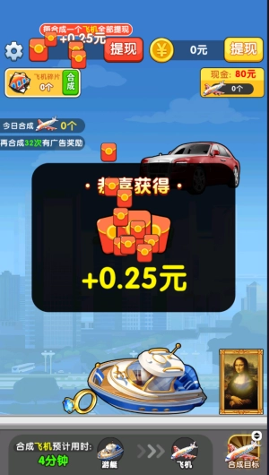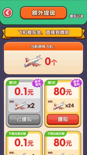 2、合成飞机后可以实现红包提现,使用飞机也能直接兑换提现奖励。