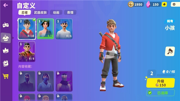 2、点击服装图标可切换不同忍者,右侧的粉刷图标用于自定义。