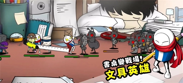 文具英雄国际服,原称Stationery Heroes,游戏内包含100多个英雄角色,它们均由橡皮擦、尺子这类常见文具转化而成。只需进行简单的搭配组合,就能组建出最强的文具军团,在书桌上击退一波又一波敌人。战斗过程趣味十足,各类技能也能畅快释放。