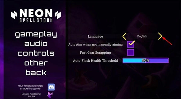 2、接下来可以选择右侧的language-english功能,快速点击最右侧的按键,就能持续切换语言。