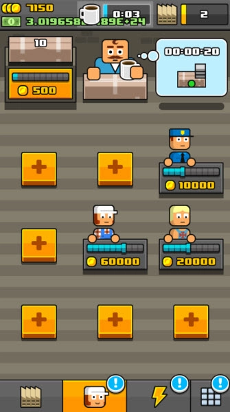 2、每位员工都能使用金币进行升级,以此提升工作效率。
