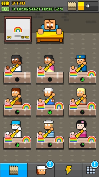 《赚更多》是一款卡通风格的模拟经营游戏,玩法十分简单:玩家将化身老板,负责管理旗下的工厂。通过为各工厂招募员工、升级设备,提升生产效率,就能获取更多利润。当等级和货币积累到一定程度时,还能解锁新的工厂,尽情享受不断扩张商业帝国的乐趣。