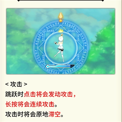 2、攻击:跳跃过程中点击可发动攻击,长按则会触发连续攻击。攻击时角色会保持原地滞空状态。