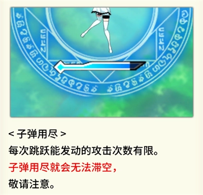 3、子弹有限:每次跳跃期间可发动的攻击次数是固定的,一旦子弹用完就会失去滞空能力,还请留意。