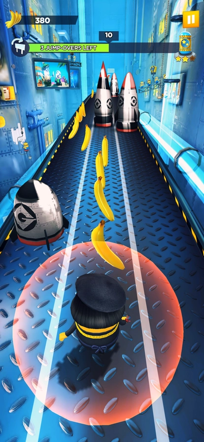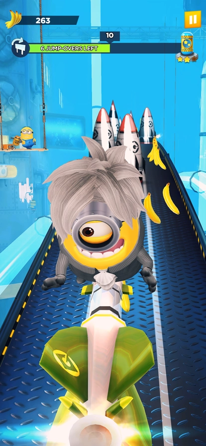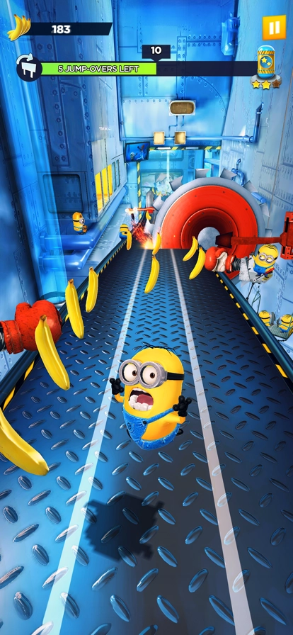 在《小黄人快跑》里,你能化身为那些萌趣的黄色小家伙。游戏中,你可以操控小黄人飞速奔跑,灵活越过障碍,还能腾空收集香蕉,甚至与反派展开对抗。游戏采用3D画面,视觉效果立体,场景刻画也十分精细。你的核心目标是收集尽可能多的香蕉,用它们为小黄人解锁各式各样的服装与装备,让小家伙们变得更有型。游戏节奏明快,充满趣味,还设置了弹簧床、滑梯、秋千等丰富机关与障碍,让跑酷过程更具挑战性和刺激感。