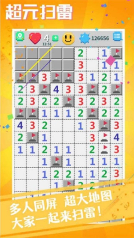 1、支持多人同屏的在线扫雷游戏,玩家们能在广阔的雷区里“规划”专属领土,也可以开展圈地活动。