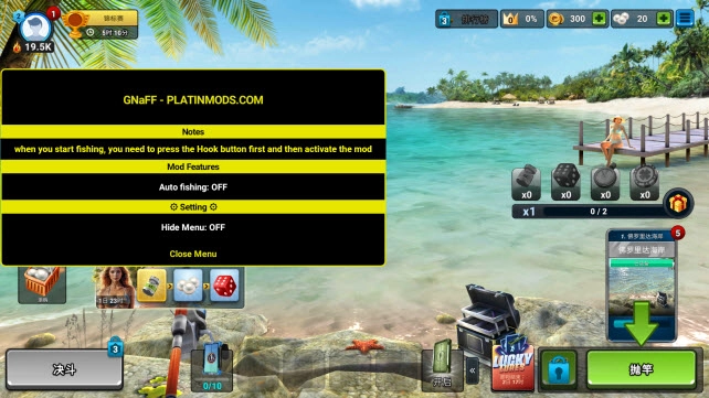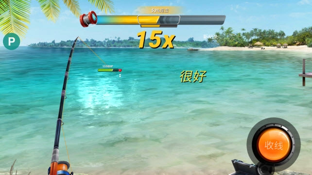 6、请注意,因为开启了自动钓鱼功能,所以在钓鱼界面我们需要一直按住收线键,不然自动钓鱼功能是无法生效的!