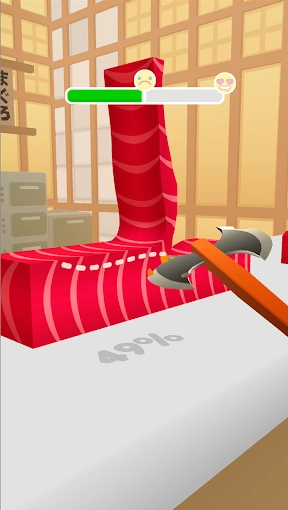 3、到了终点之后,按住屏幕后就可以切开寿司。