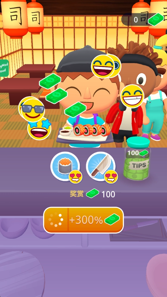 4、随后就可以将寿司呈给客人,获得对应的奖励。