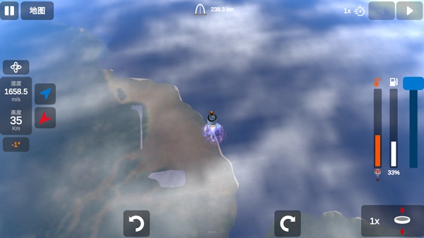 3、点击点火按钮启动发动机,火箭的速度与方向尽在你的掌控之中