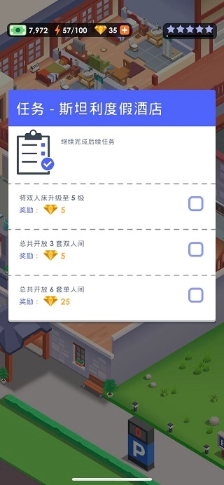 3、高清写实的场景画面设计,需要你持续将酒店布置成最舒适的环境。