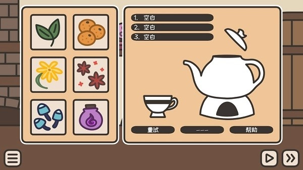 5、后续为常驻顾客沏茶时,可供选择的配方依次是成熟鲜花、糖粒蘑菇和暗黑补药。