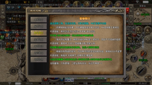 1、战士:初期单练起步比较困难,到了中后阶段属性得到提升后,实力会显著增强,在PK一对一战斗中堪称王者。