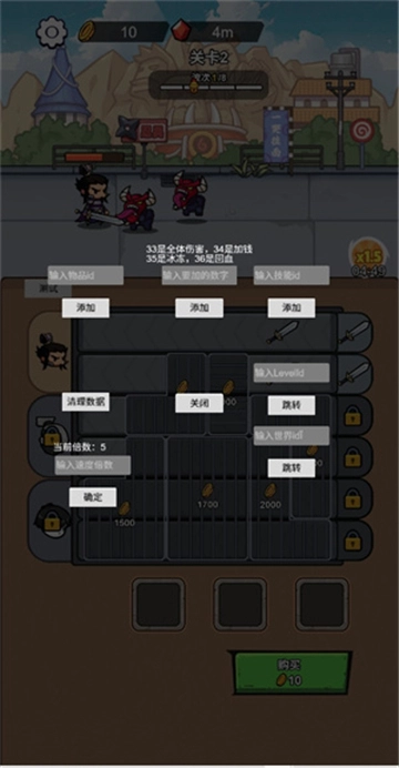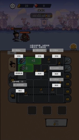 5、点击“测试”按钮可打开GM菜单,能自由添加各类道具,也可以调整速度倍率。