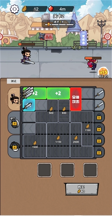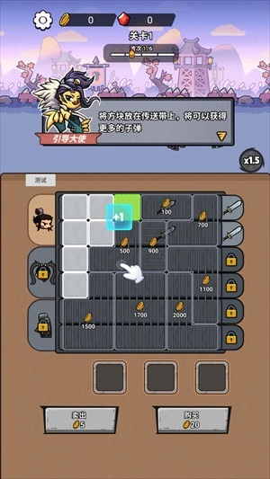 2、点击右下角的“购买”按钮可获取格子,把格子拖动到上方角色的格子区域后,就能使子弹数量增加1。