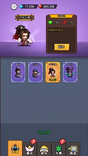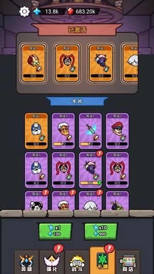 6、完成教程后,玩家能在主界面找到各类养成系统,点击卡牌并通过抽卡操作,可获取卡牌来提升角色属性。