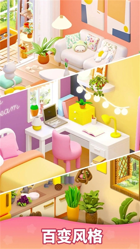 合并两个相同的对象后,您将获得解锁并升级每件家具与房间角落的工具,用来翻新和粉刷房屋或豪宅。