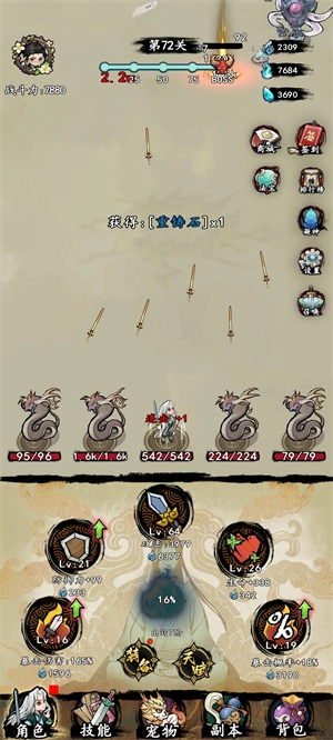 1、主角的核心养成围绕装备与天赋展开,这也是玩家日常操作最频繁的界面。装备采用替换式升级机制,闲置装备可进行分解处理;天赋则能消耗挂机获得的资源直接提升属性。