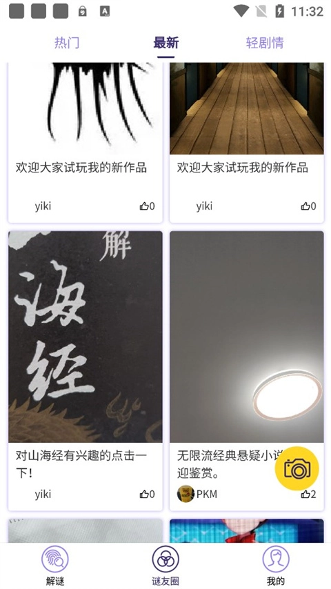 2、登录后,在解谜板块里我们能看到不少作品,包含剧情解谜与互动小说两类。