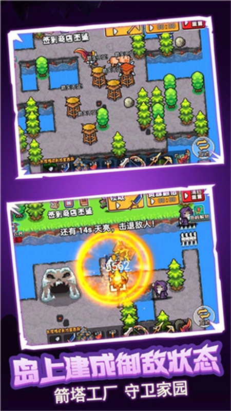 每当夜幕降临,就会有大批怪物涌现,得提前建造箭塔之类的防御设施,守护好物资以熬过黑夜。