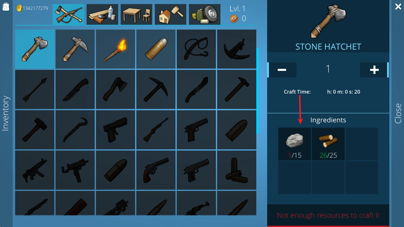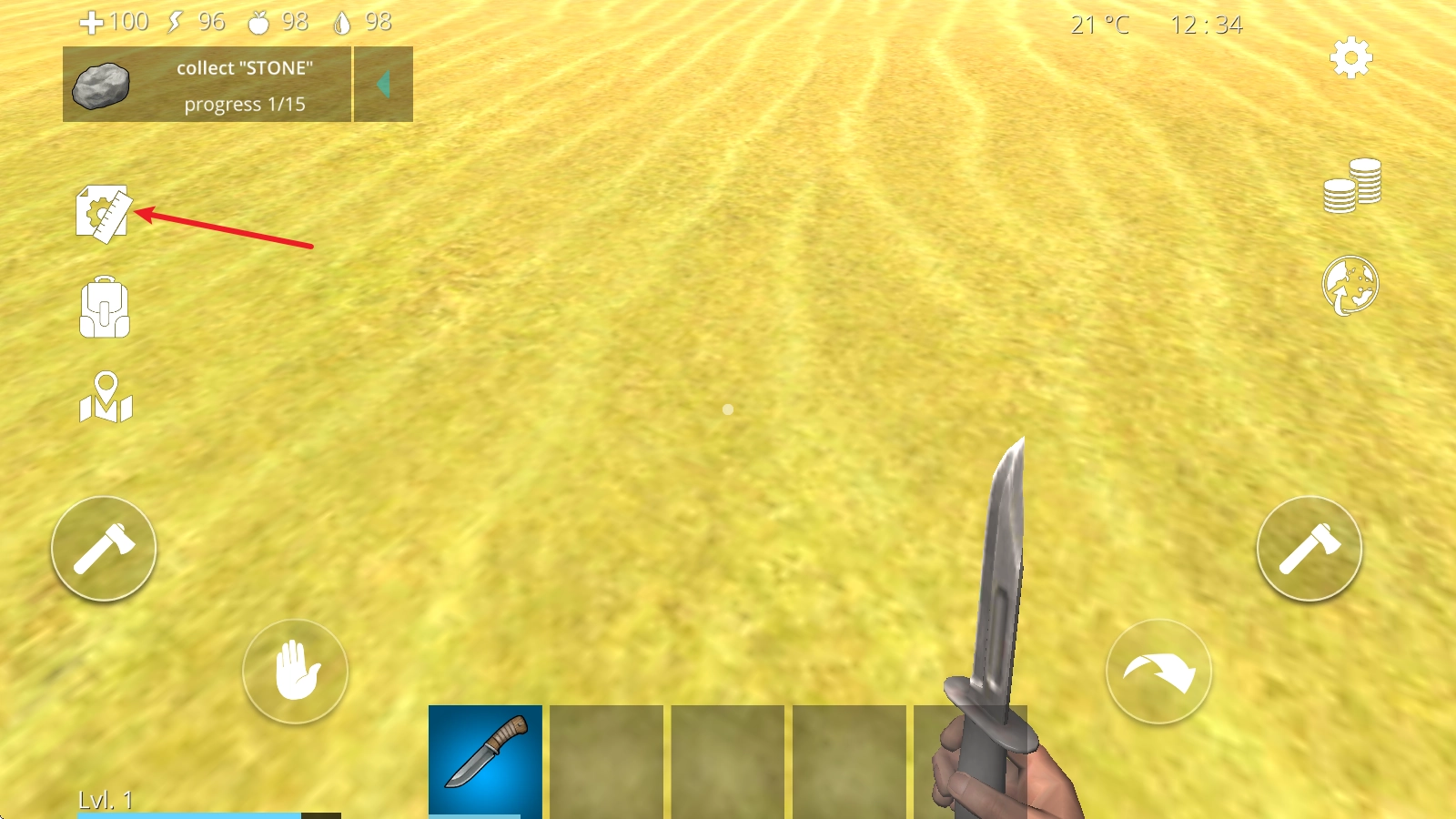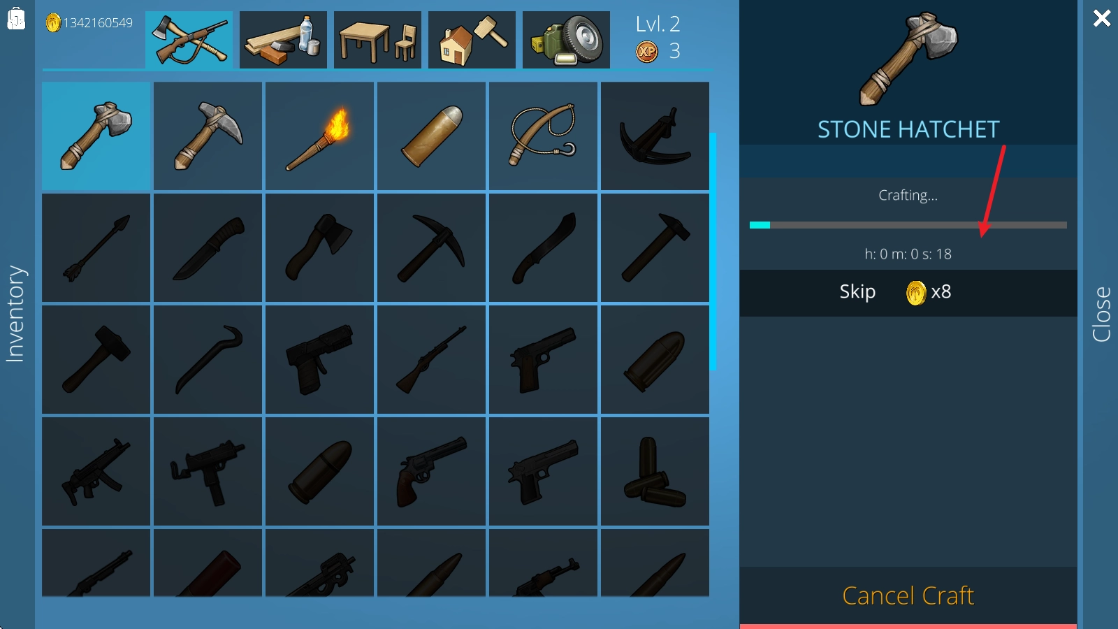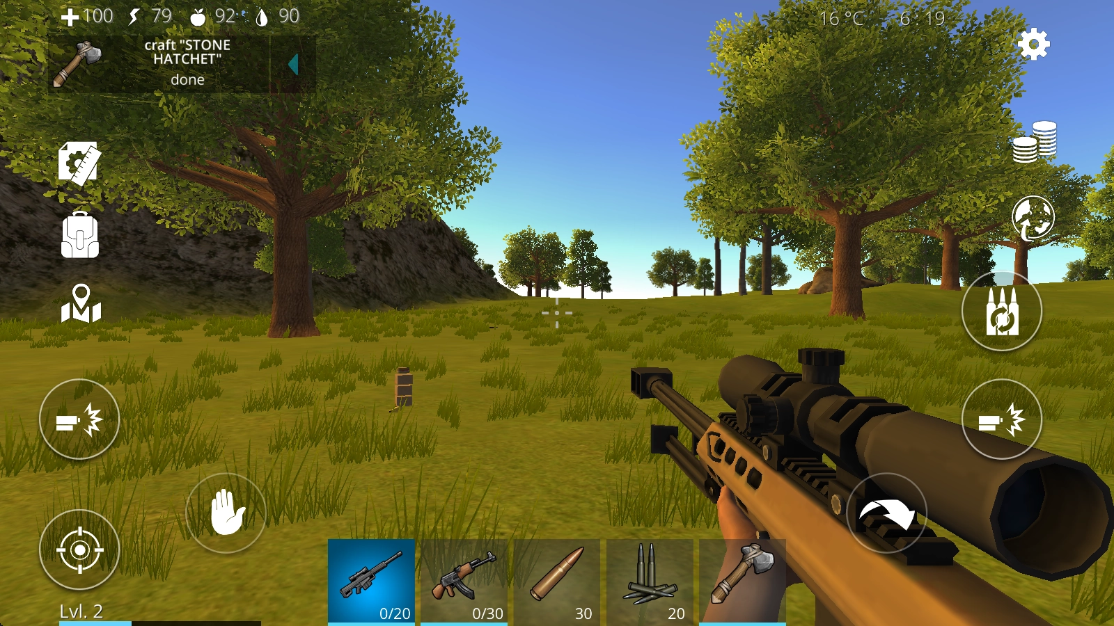 3、随着等级的提高,会解锁更多种类的武器,使用这些武器去狩猎,获取充足的食物资源,这是生存的基础。