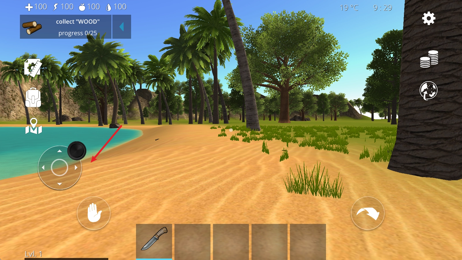 1、进入后,左侧的摇杆控制人物移动。
