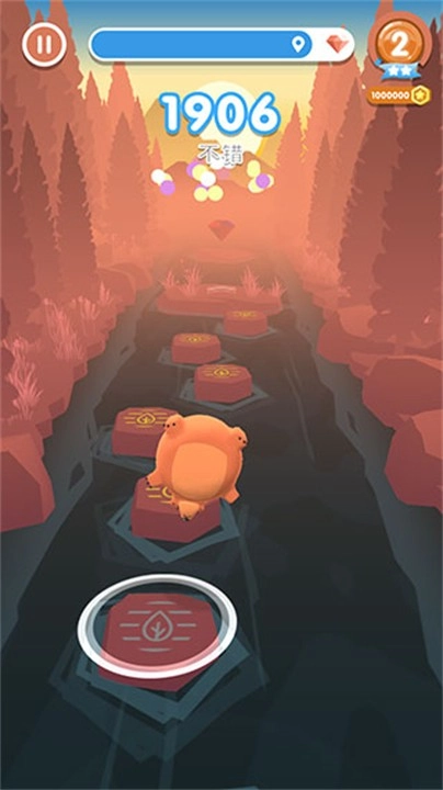 带领动物伙伴跨越由平台构成的障碍路径,随着流行歌曲的节拍轻踏脚尖。